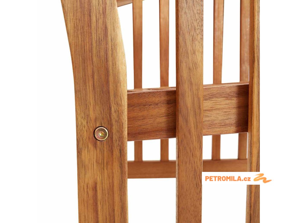 Zahradní křeslo je vyrobené z masivního akáciového dřeva s olejovým povrchem, je stabilní a má dlouhou životnost. Řemeslné zpracování a krásná kresba dřeva dává každému kusu nábytku jeho charakteristický a neopakovatelný vzhled.