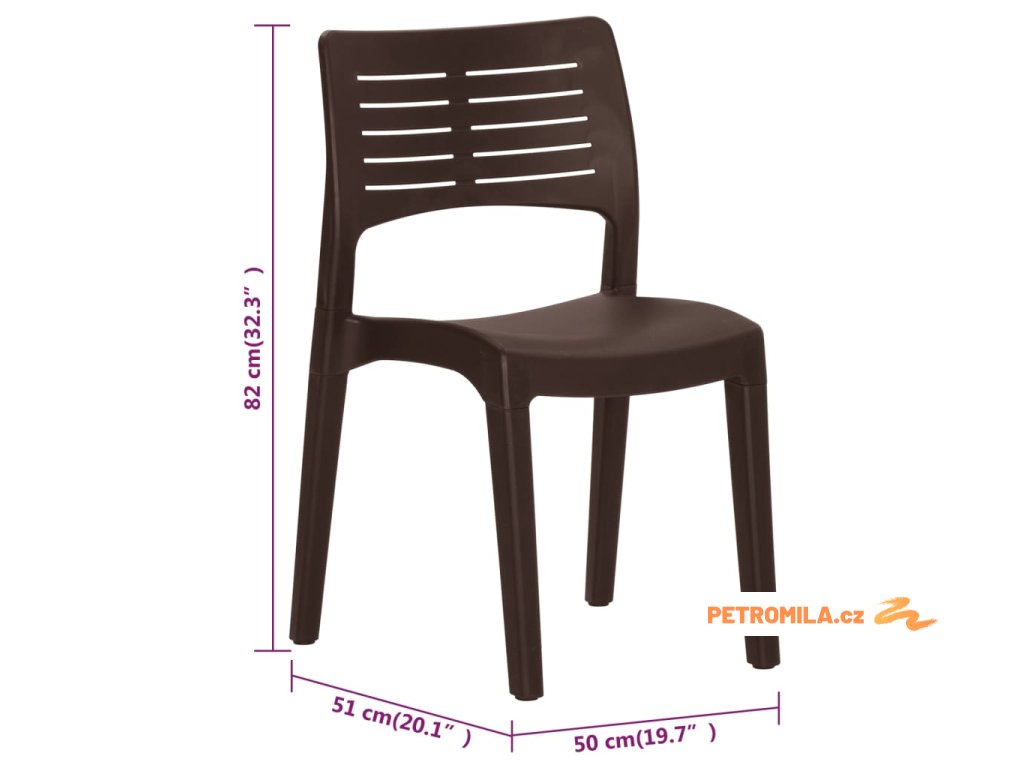 - Odolný materiál: Tyto venkovní židle jsou vyrobeny z polypropylenu, takže se snadno čistí a jsou dostatečně odolné pro venkovní použití.