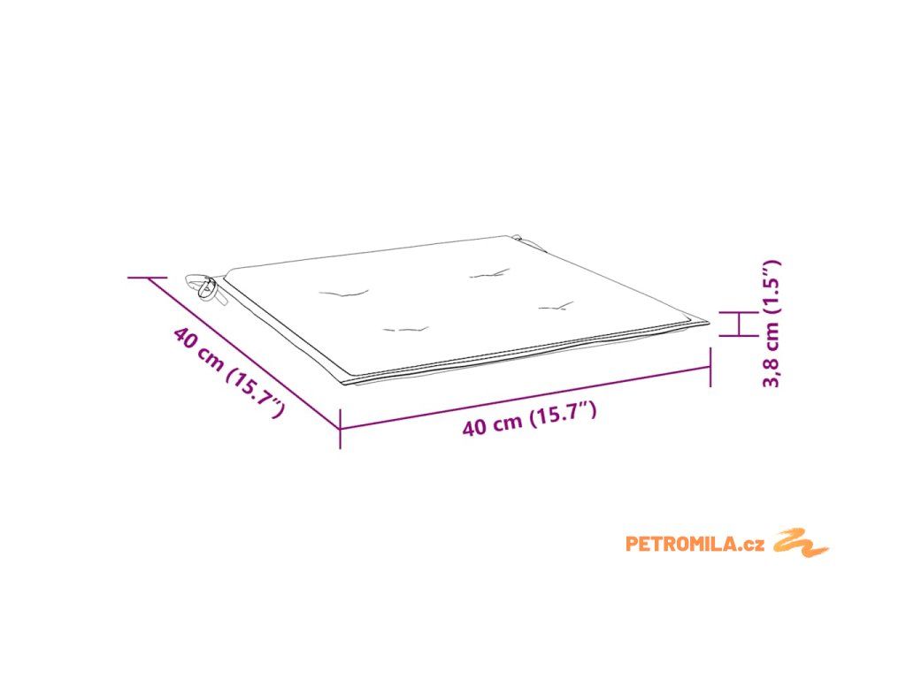 - Rozměry podušky: 40 x 40 x 4 cm (D x Š x T)