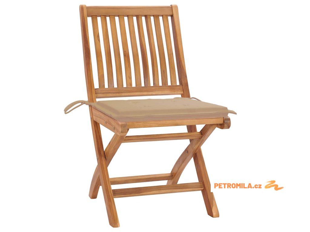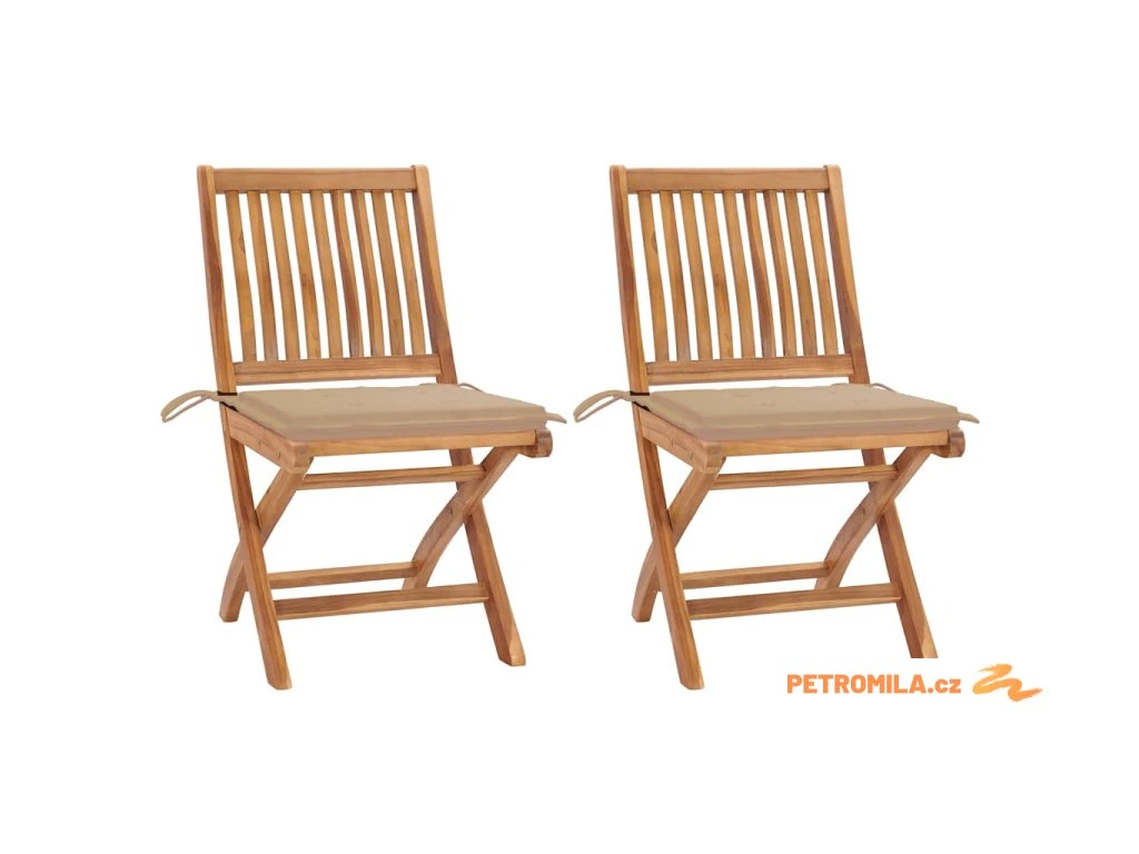 Zahradní židle 2 ks s béžovými poduškami masivní teak