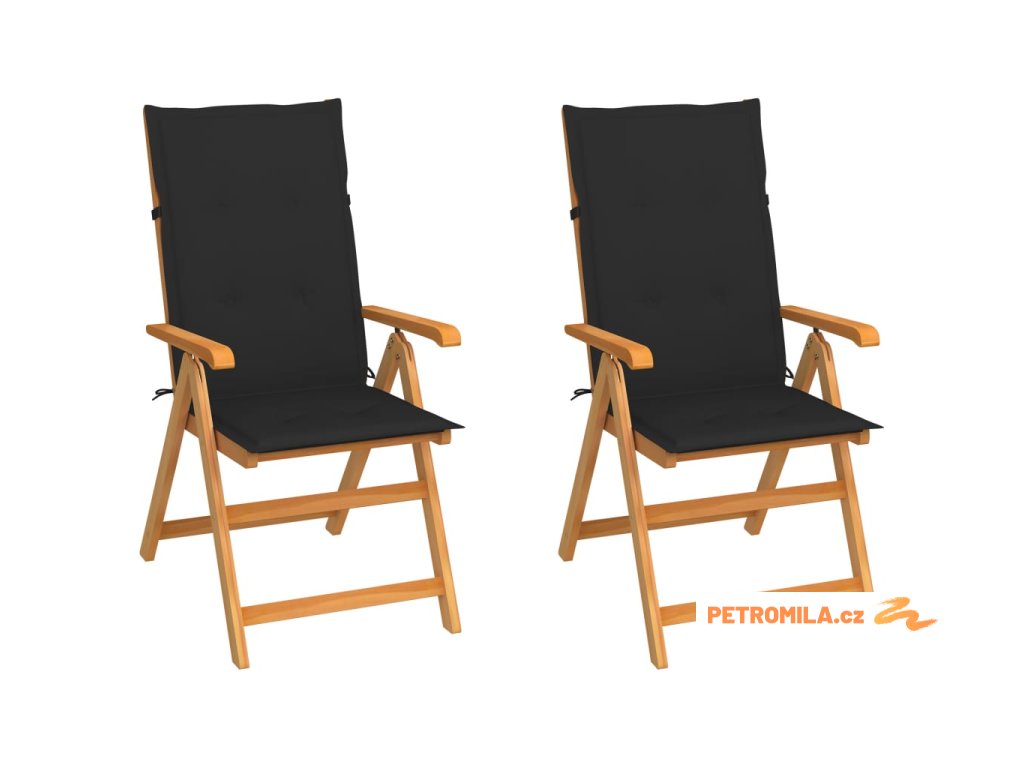 Zahradní židle 2 ks s černými poduškami masivní teak
