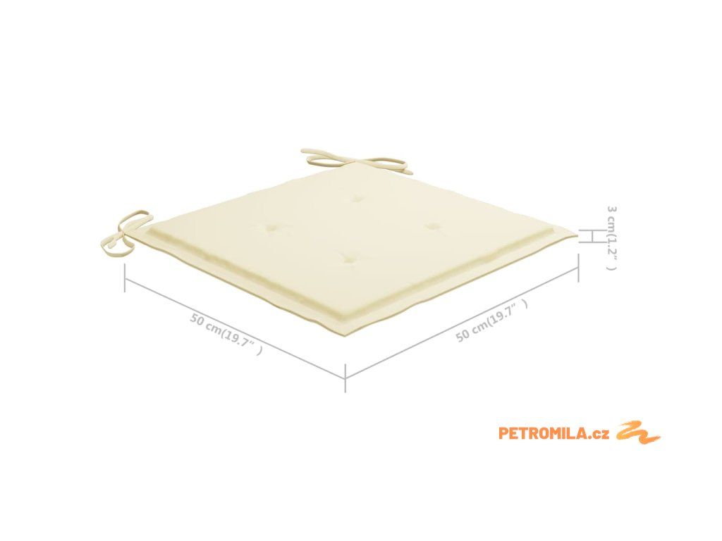 - Rozměry podušky: 50 x 50 x 3 cm (D x Š x T)