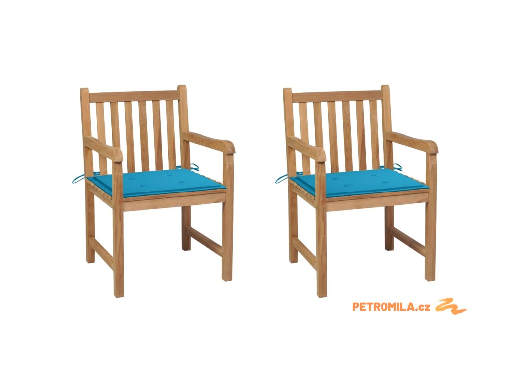 Zahradní židle 2 ks s modrými poduškami masivní teak