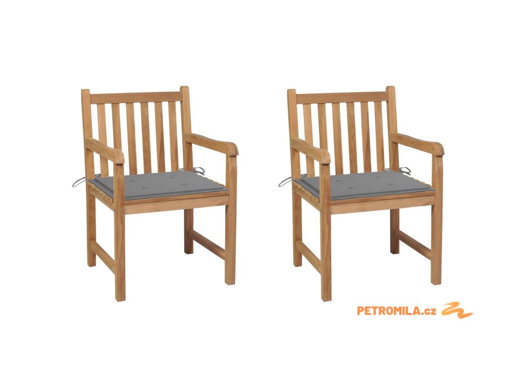 Zahradní židle 2 ks šedé podušky masivní teakové dřevo