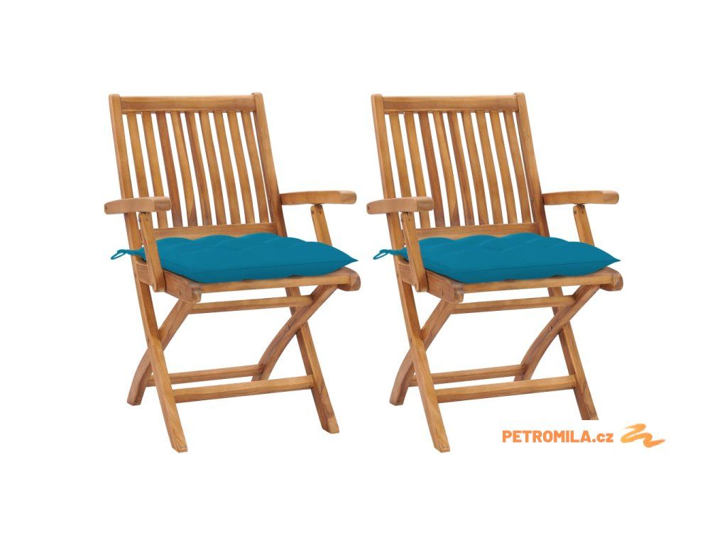 Zahradní židle 2 ks světle modré podušky masivní teak