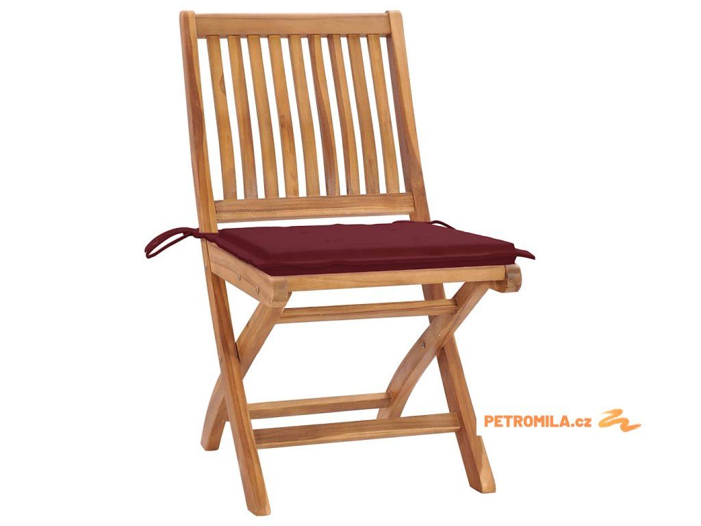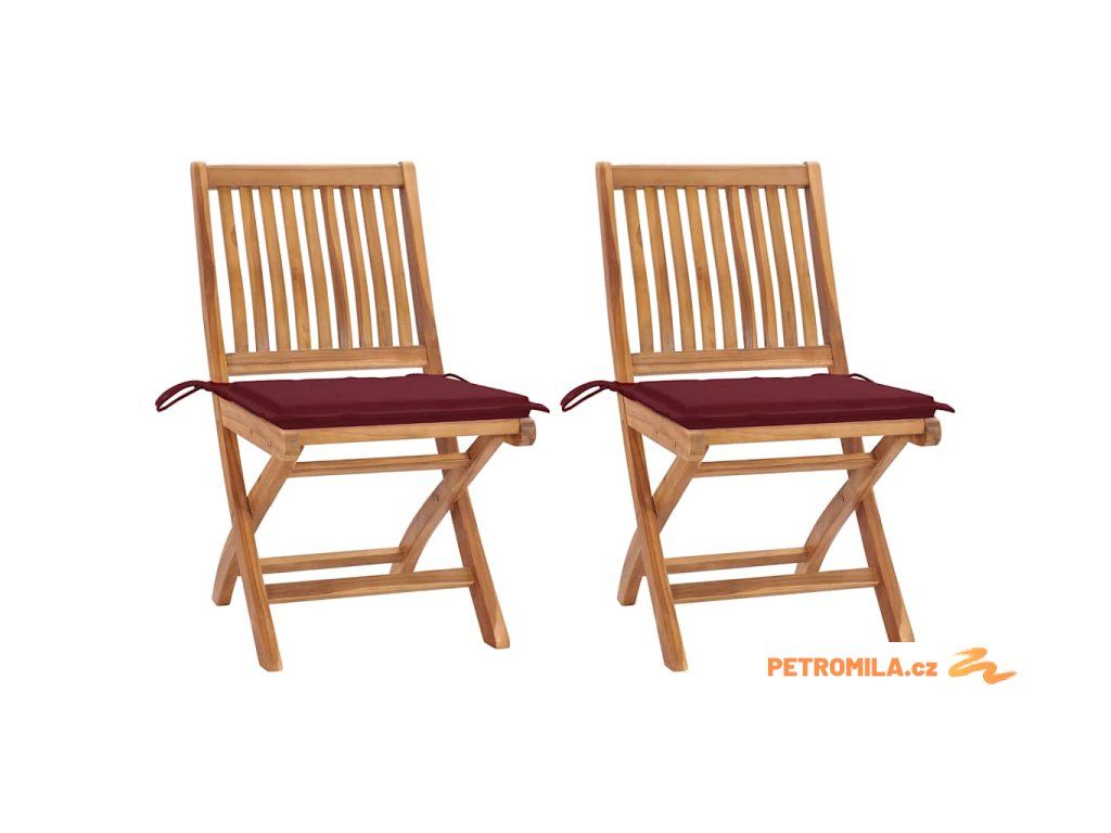 Zahradní židle 2 ks vínové podušky masivní teakové dřevo