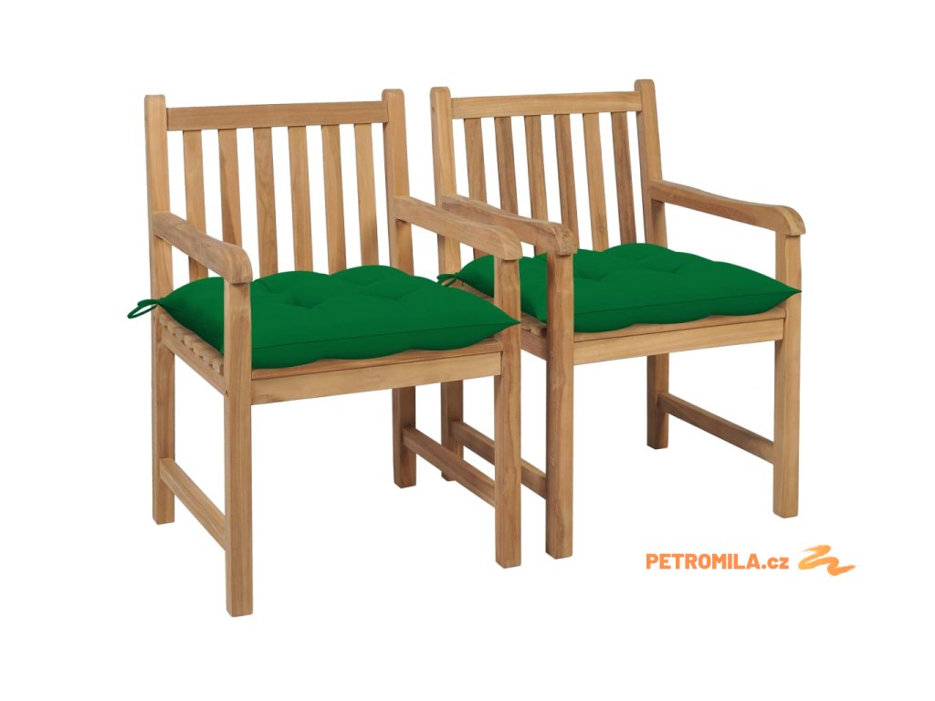 Zahradní židle 2 ks zelené podušky masivní teak