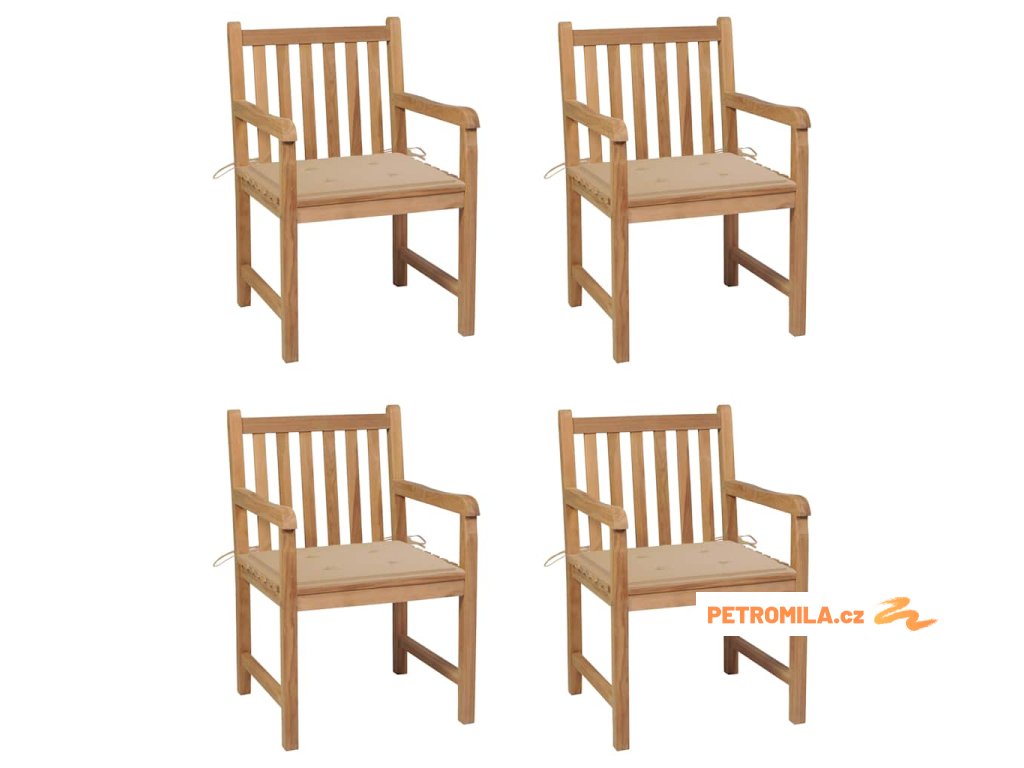 Zahradní židle 4 ks béžové podušky masivní teak