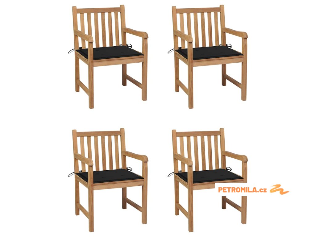 Zahradní židle 4 ks černé podušky masivní teak