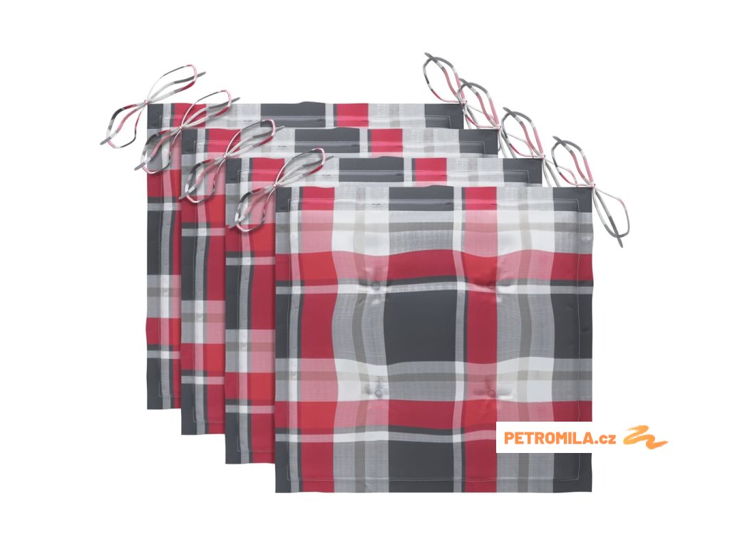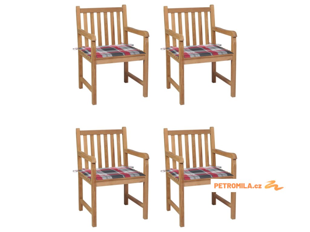 Zahradní židle 4 ks červené kárované podušky masivní teak