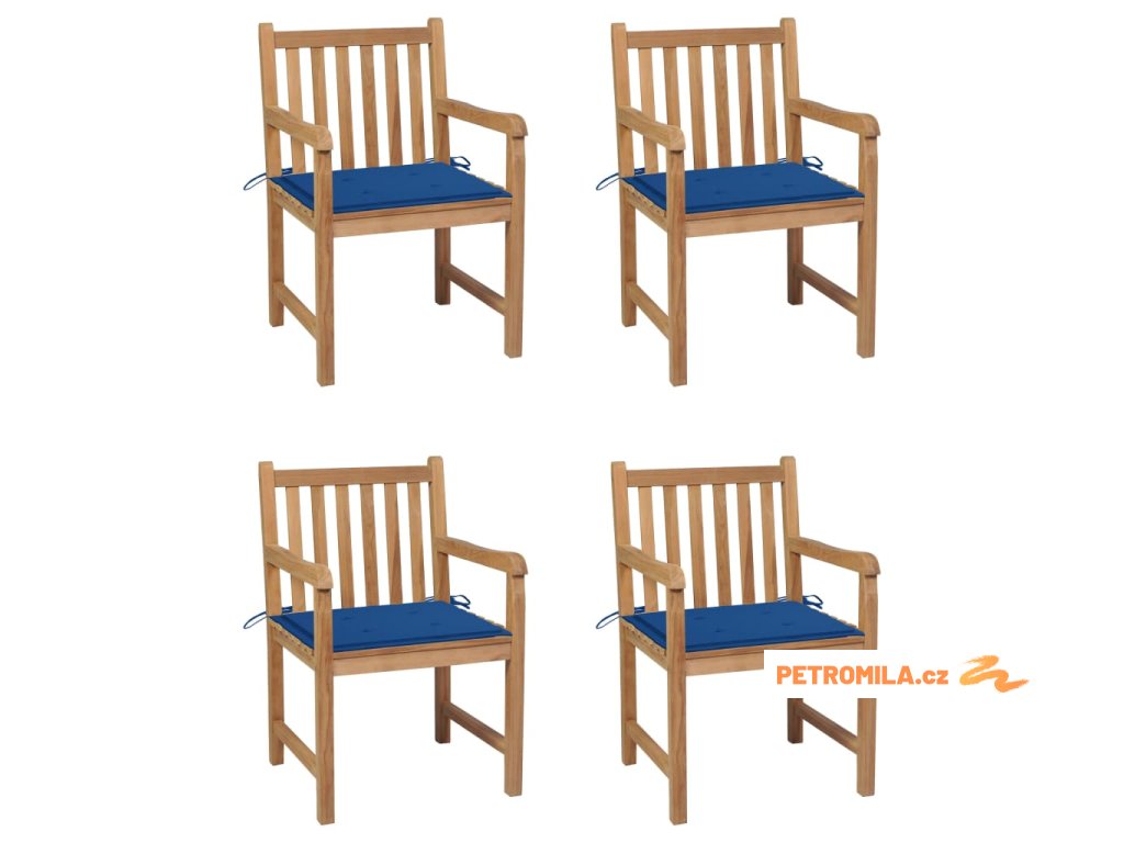 Zahradní židle 4 ks královsky modré podušky masivní teak
