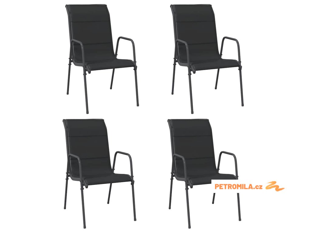 Zahradní židle 4 ks ocel a textilen černé