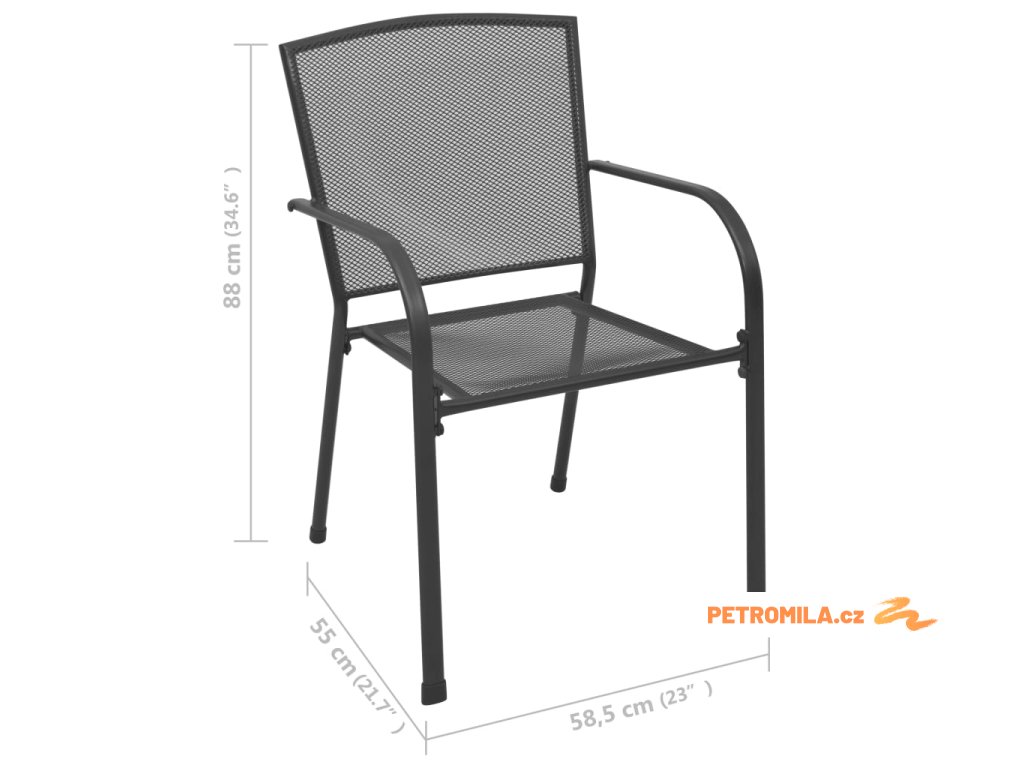 Židle jsou vyrobené z pevné oceli s práškovým nástřikem a ošetřené technologií e-coating. Židle mají dlouhou životnost, jsou nezvykle silné a odolné vůči rzi a rozmarům počasí. Tato povrchová úprava také usnadňuje čištění a údržbu. Pletivový design židlí působí na pohled velmi elegantně. Pokud je zrovna nepoužíváte, můžete je pro úsporu místa naskládat na sebe.