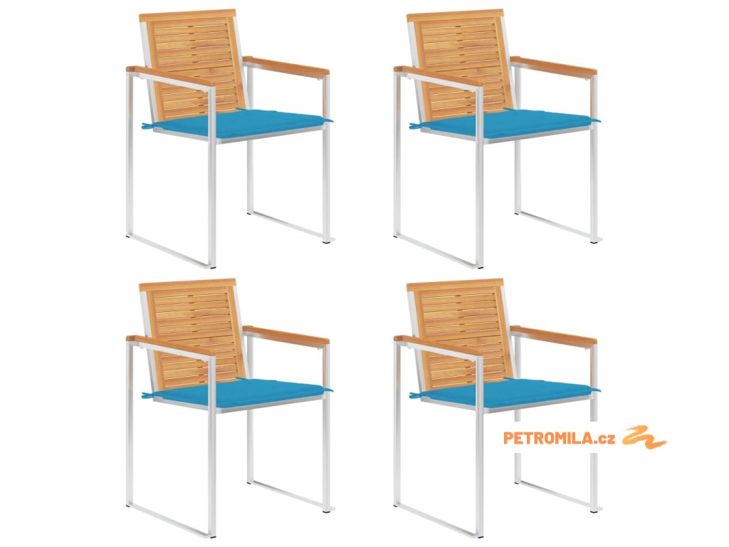 Zahradní židle 4 ks s poduškami masivní teakové dřevo