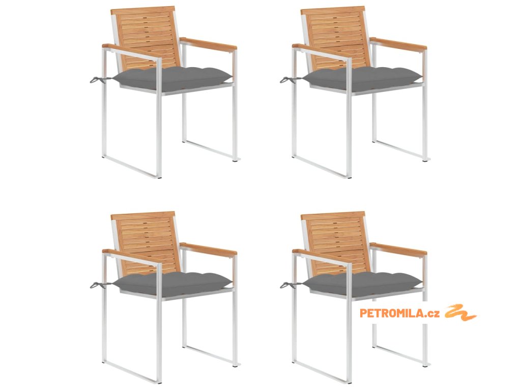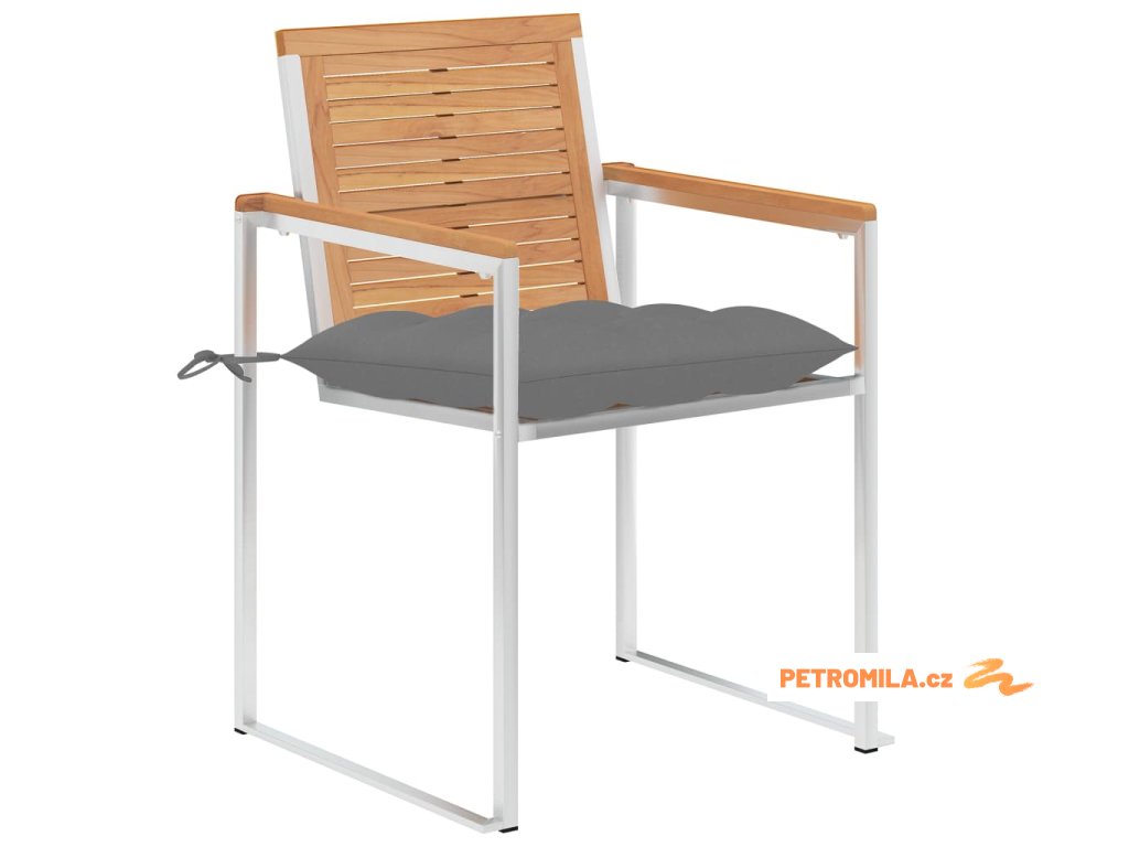 Nábytek je zhotovený z extrémně odolného teakového tvrdého dřeva, které již prošlo procesem smršťování, bylo uměle vysušené a poté jemně a dohladka obroušené. Teakové dřevo je oceňované pro svou výjimečnou pevnost a klimatickou odolnost, a proto je jedním z nejoblíbenějších materiálů pro výrobu zahradního nábytku. Je to skvělá volba, pokud si chcete pořídit venkovní výbavu, která vám vydrží sloužit dlouhá léta. Vzhledem k rámu z vysoce kvalitní nerezové oceli jsou židle zároveň robustní a odolné vůči korozi. Přiložená poduška slouží nejen jako praktický doplněk – plní také dekorativní funkci. Posaďte se a dopřejte si venku skvělou večeři nebo si jen tak odpočiňte a užívejte si počasí s touto klasickou sadou zahradních židlí.