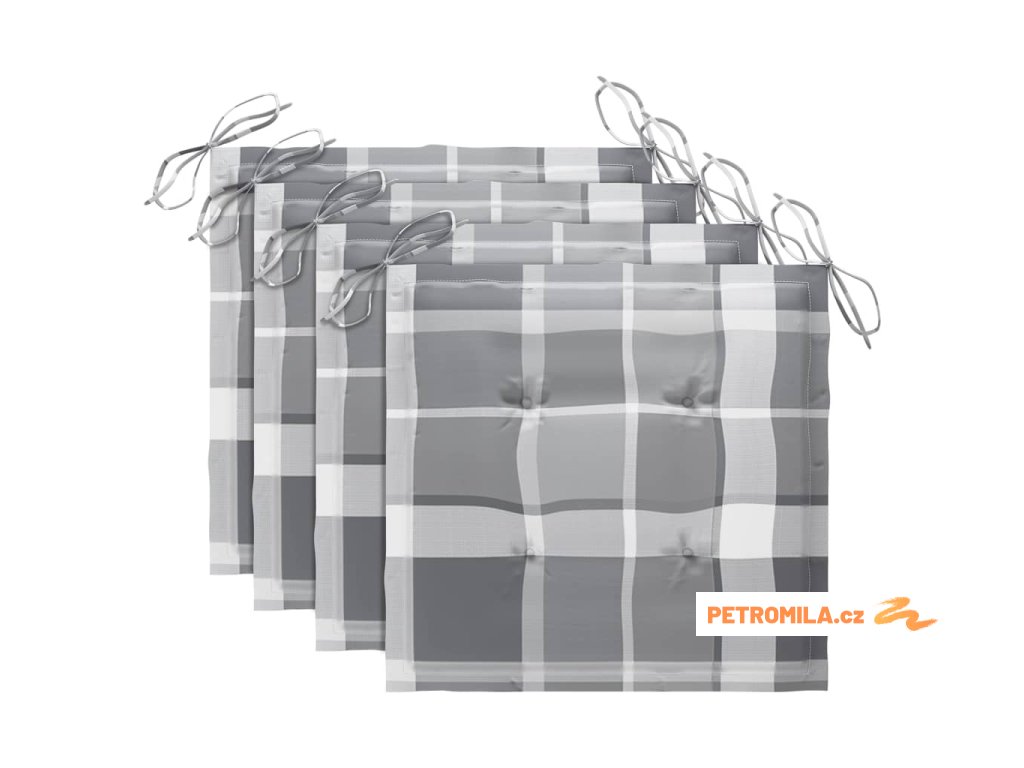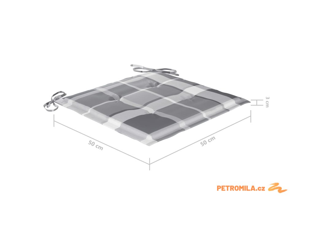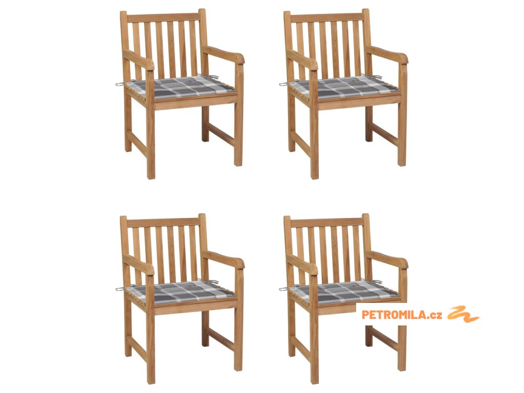 Zahradní židle 4 ks šedé kárované podušky masivní teak