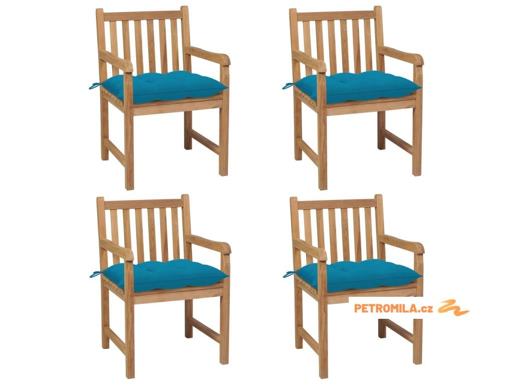 Zahradní židle 4 ks světle modré podušky masivní teak