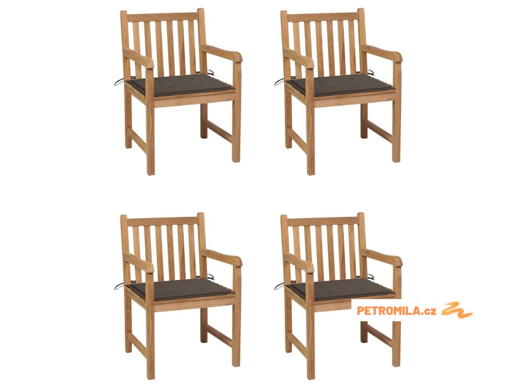 Zahradní židle 4 ks taupe podušky masivní teak