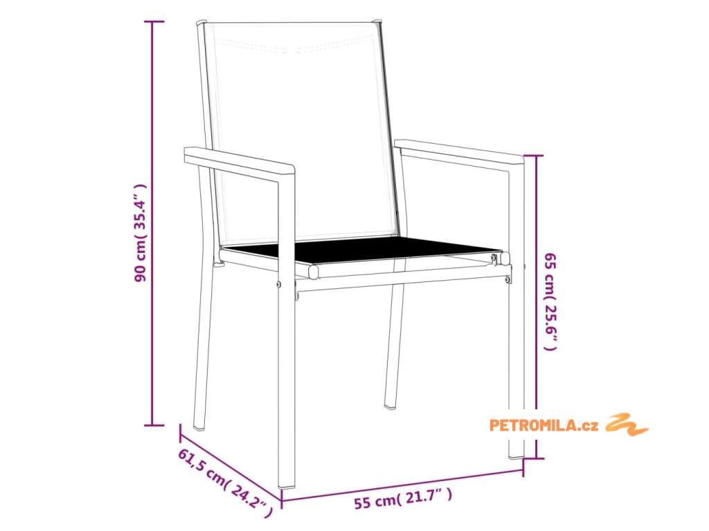 Zahradní židle 6 ks černé 55 x 61,5 x 90 cm textilen a ocel