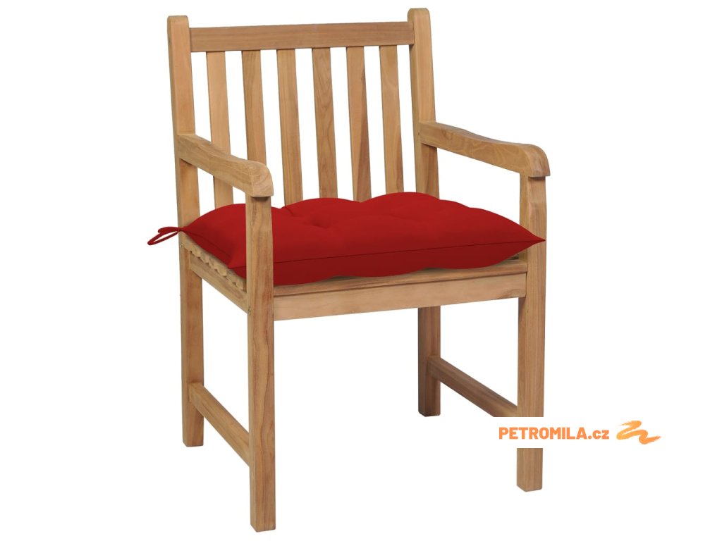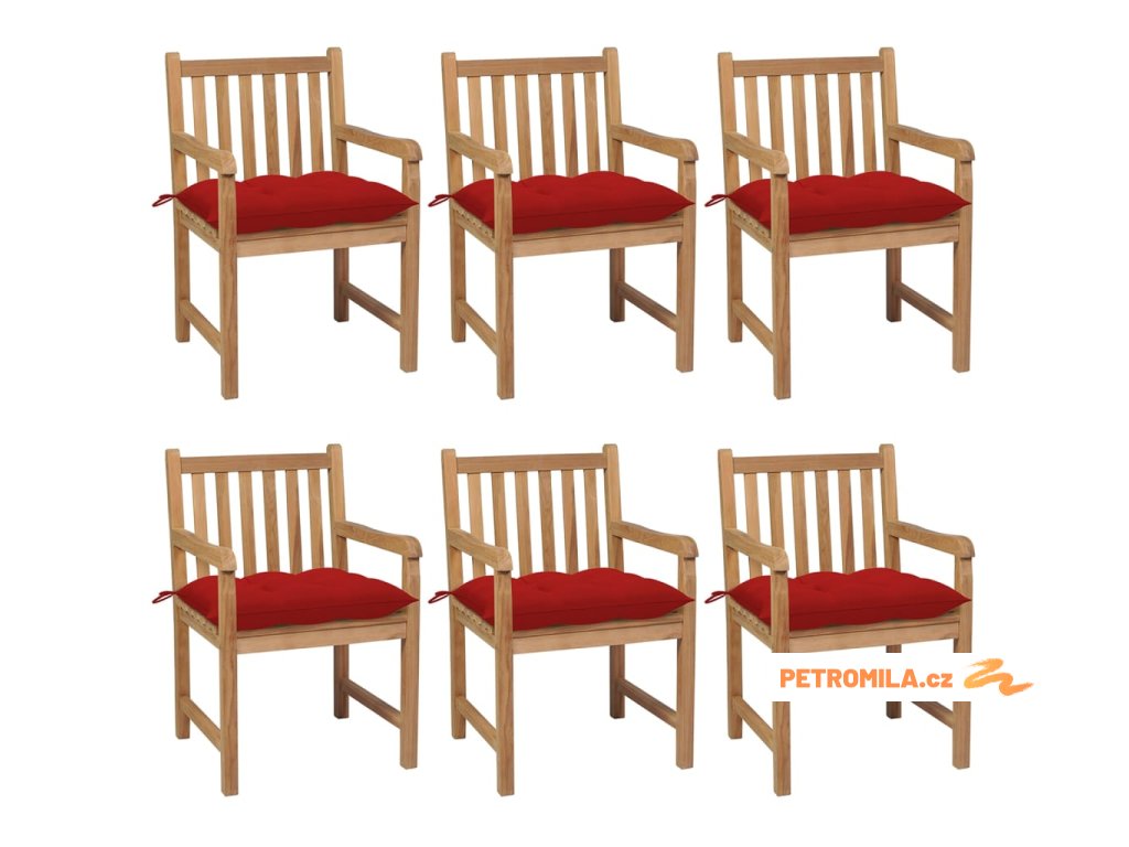 Zahradní židle 6 ks červené podušky masivní teakové dřevo
