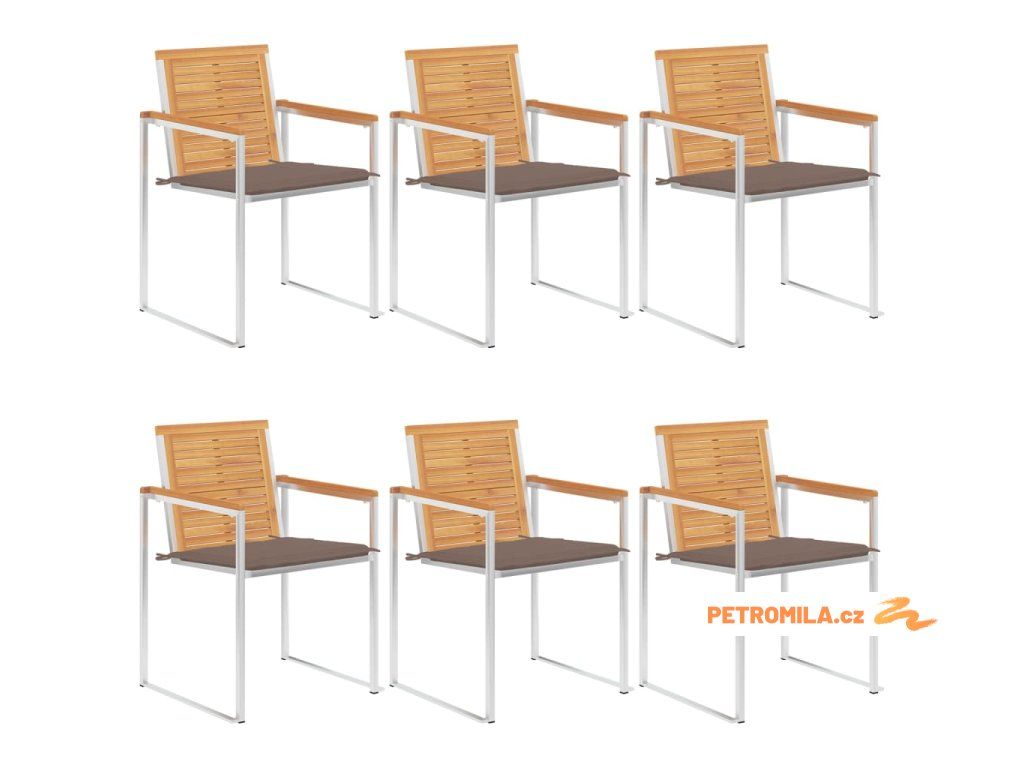 Zahradní židle 6 ks s poduškami masivní teakové dřevo
