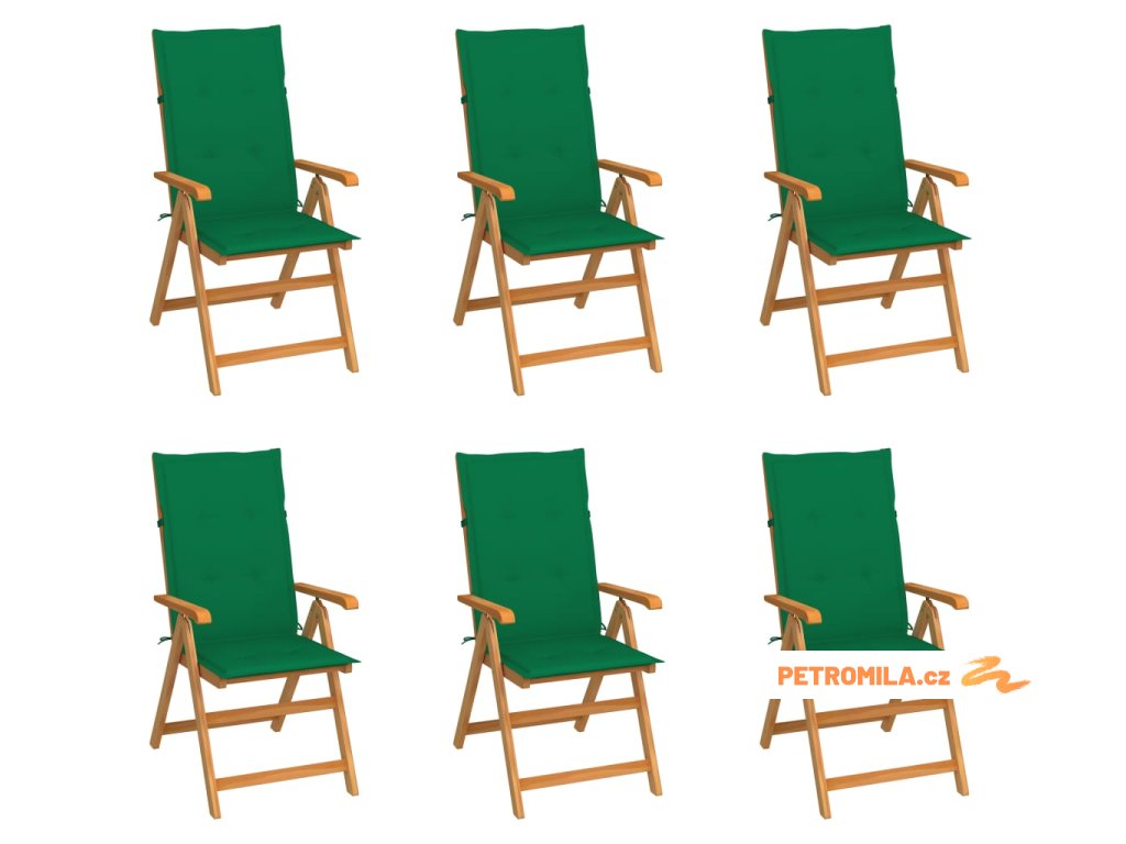 Zahradní židle 6 ks se zelenými poduškami masivní teak