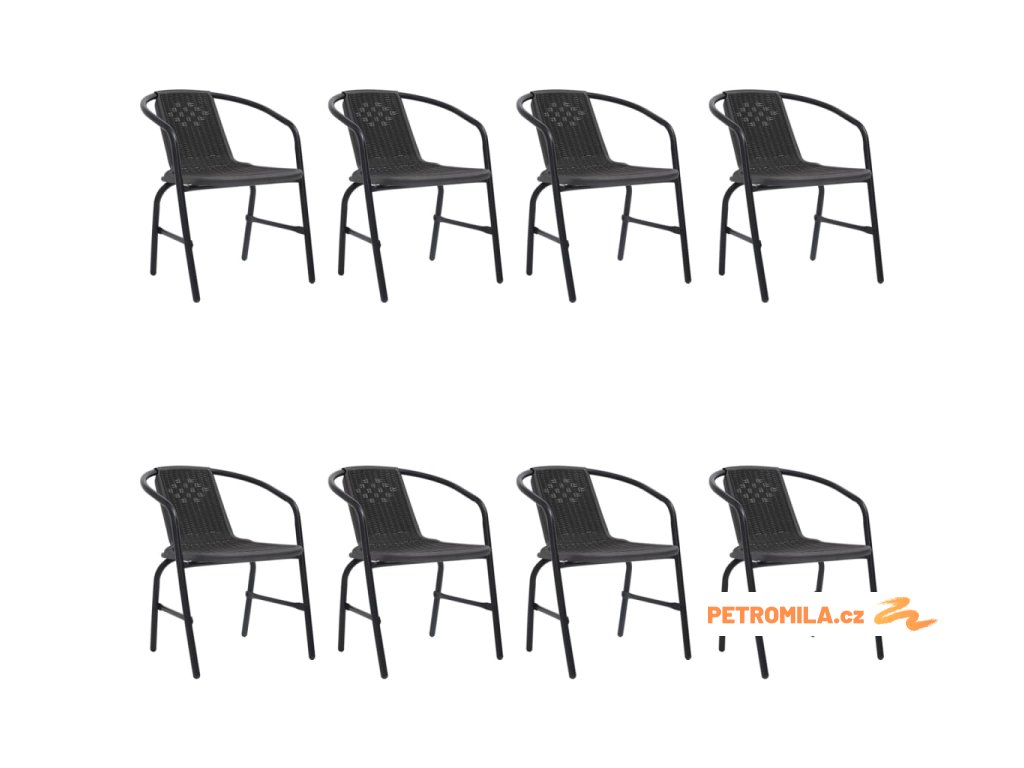 Zahradní židle 8 ks plastový ratan a ocel 110 kg