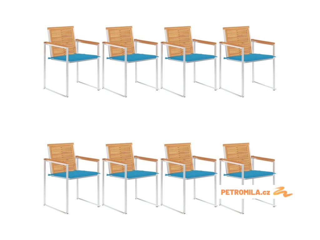 Zahradní židle 8 ks s poduškami masivní teakové dřevo