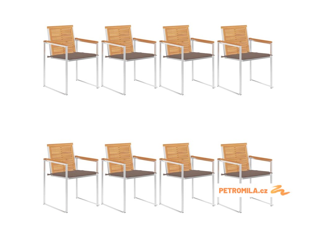 Zahradní židle 8 ks s poduškami masivní teakové dřevo
