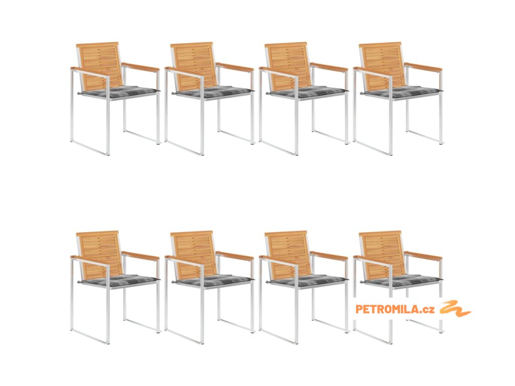 Zahradní židle 8 ks s poduškami masivní teakové dřevo