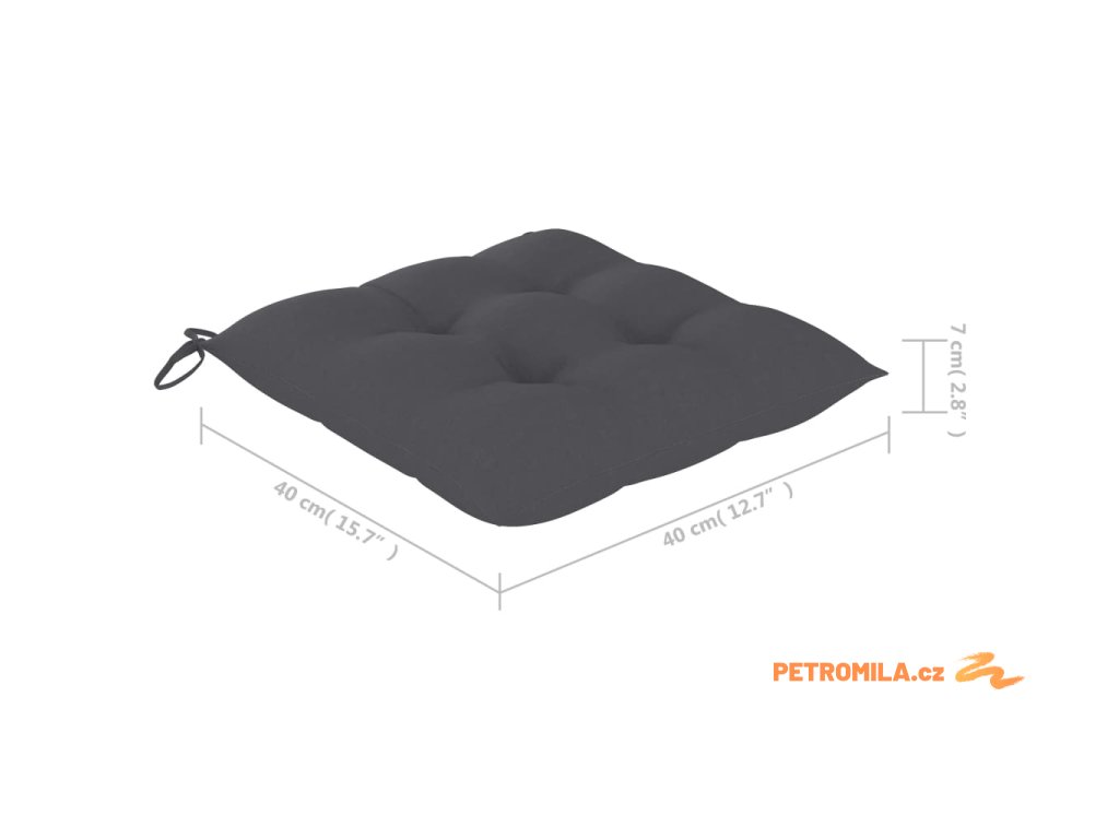 - Rozměry podušky: 40 x 40 x 7 cm (D x Š x T)