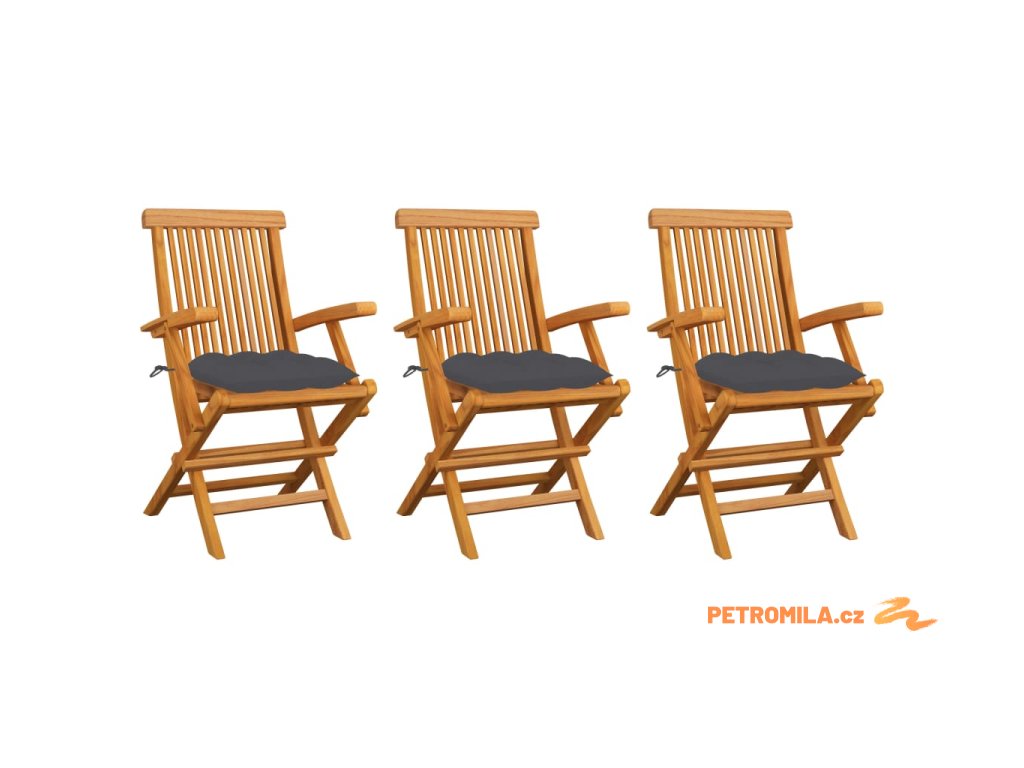 Zahradní židle s antracitovými poduškami 3 ks masivní teak