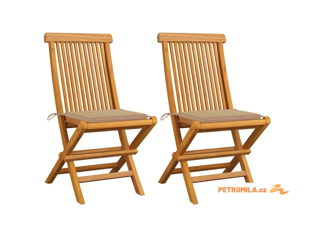 Zahradní židle s béžovými poduškami 2 ks masivní teak