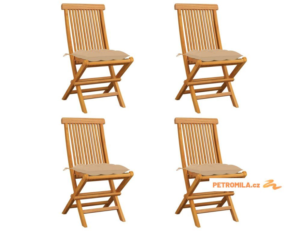 Zahradní židle s béžovými poduškami 4 ks masivní teak