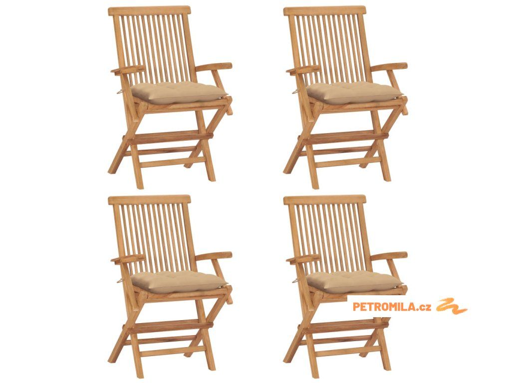 Zahradní židle s béžovými poduškami 4 ks masivní teak