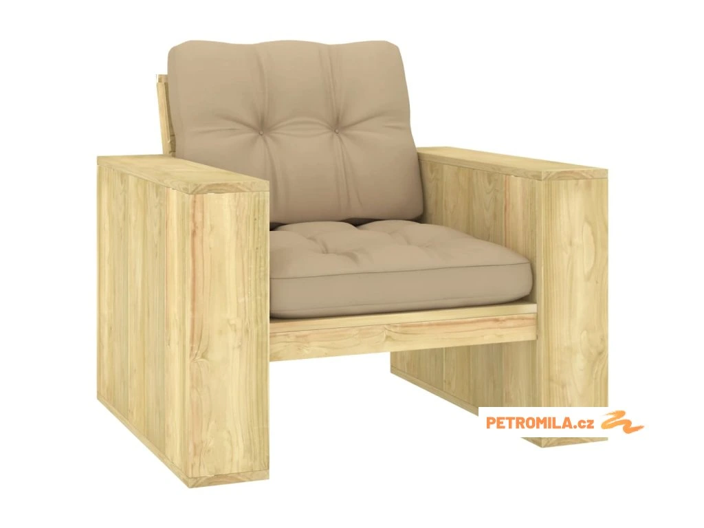 Zahradní židle s béžovými poduškami impregnovaná borovice