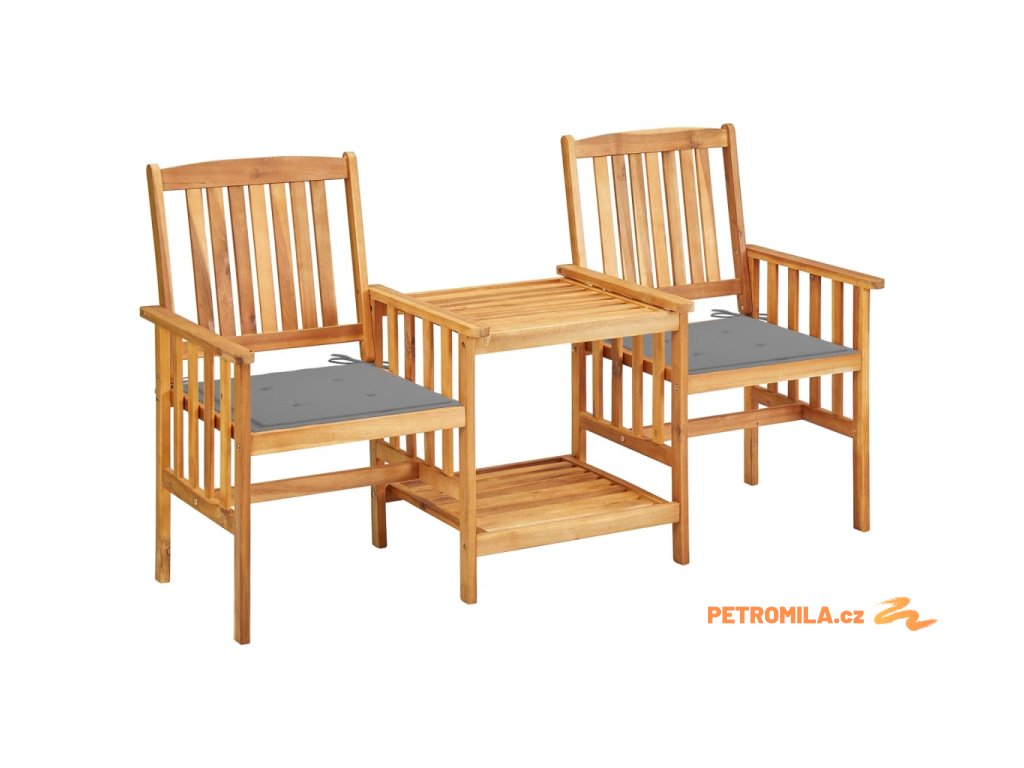 Zahradní židle s čajovým stolkem a poduškami 2ks akáciové dřevo