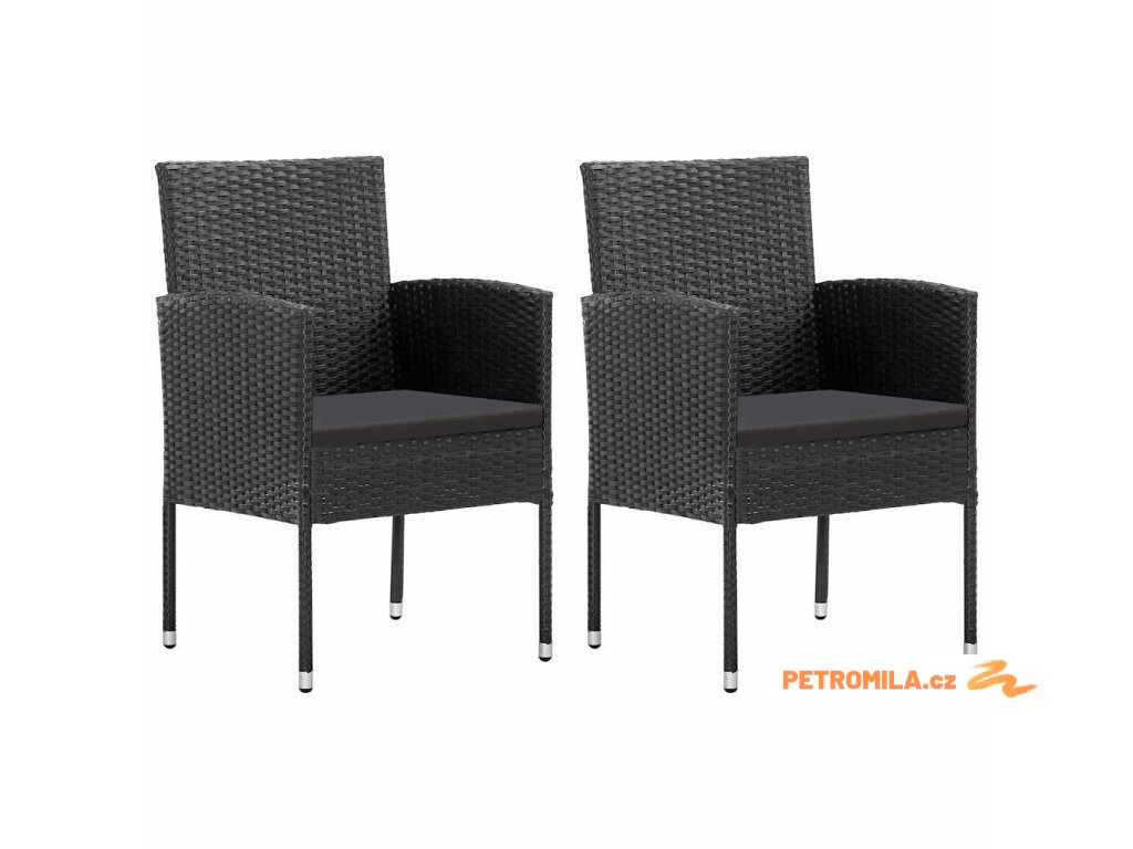 Zahradní židle s černými poduškami 2 ks černé polyratan