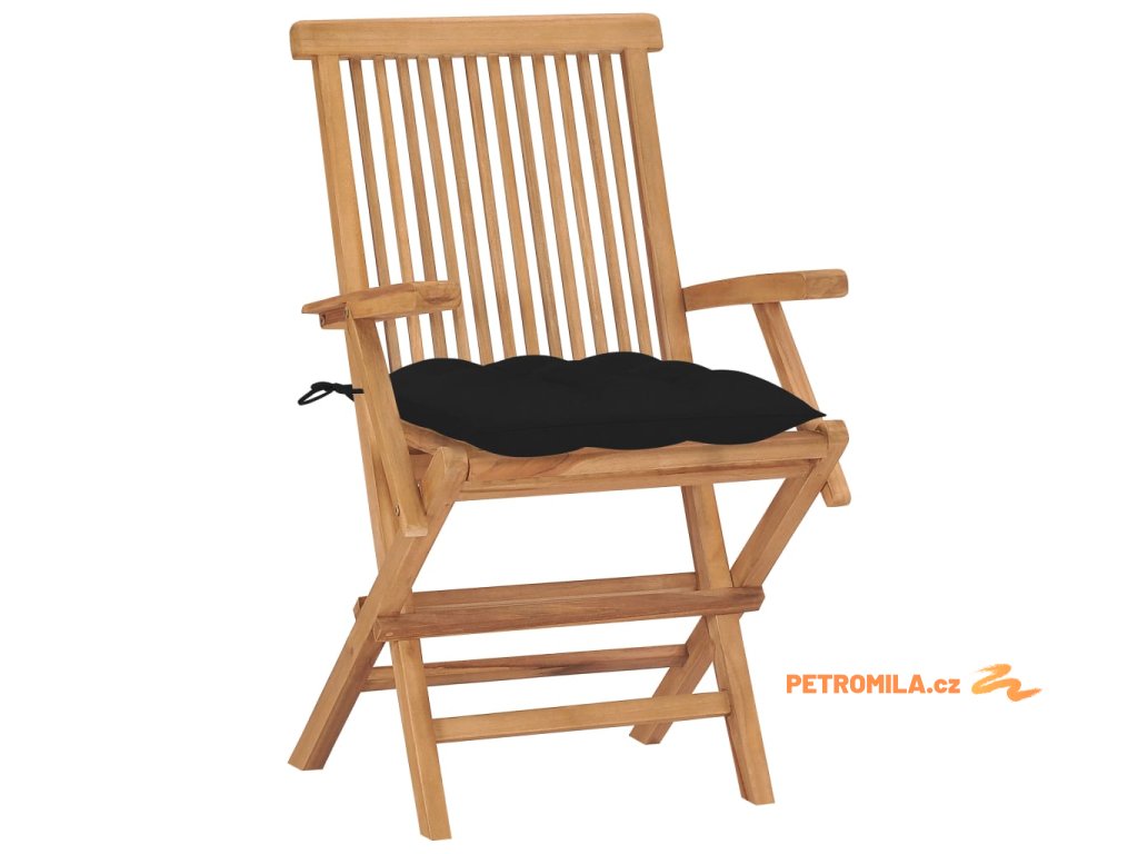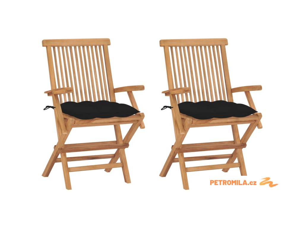 Zahradní židle s černými poduškami 2 ks masivní teak