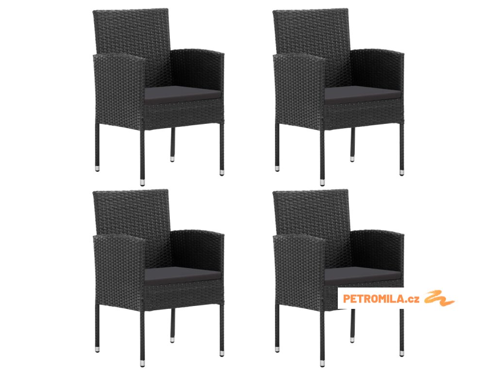 Zahradní židle s černými poduškami 4 ks černé polyratan