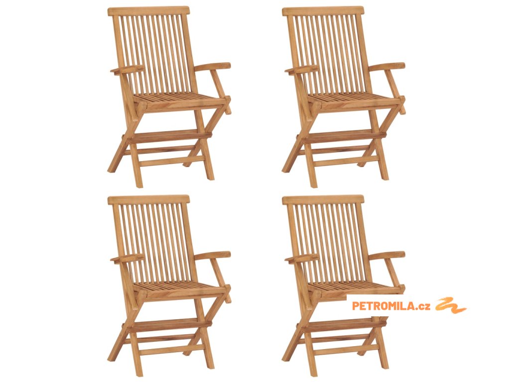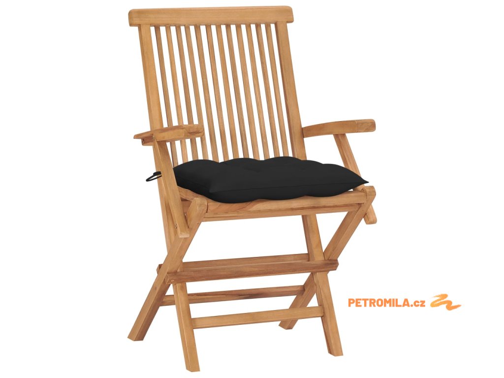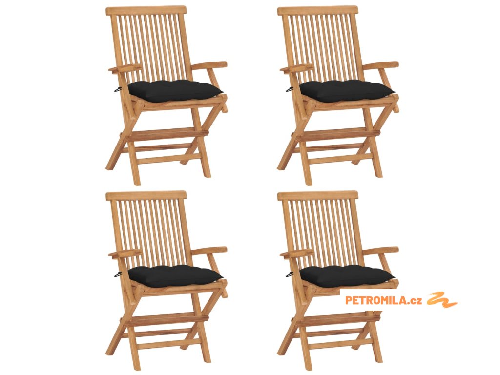 Zahradní židle s černými poduškami 4 ks masivní teak