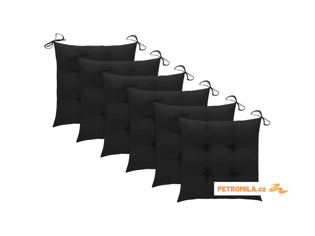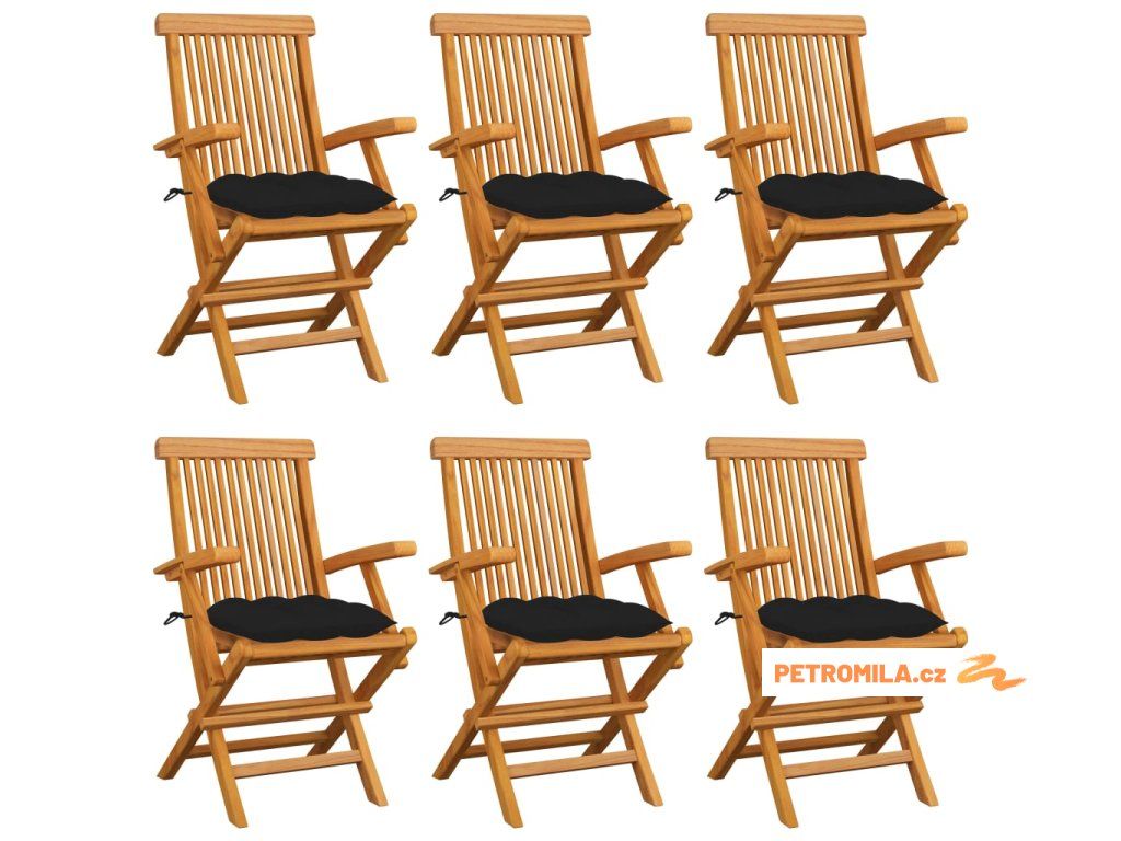 Zahradní židle s černými poduškami 6 ks masivní teak