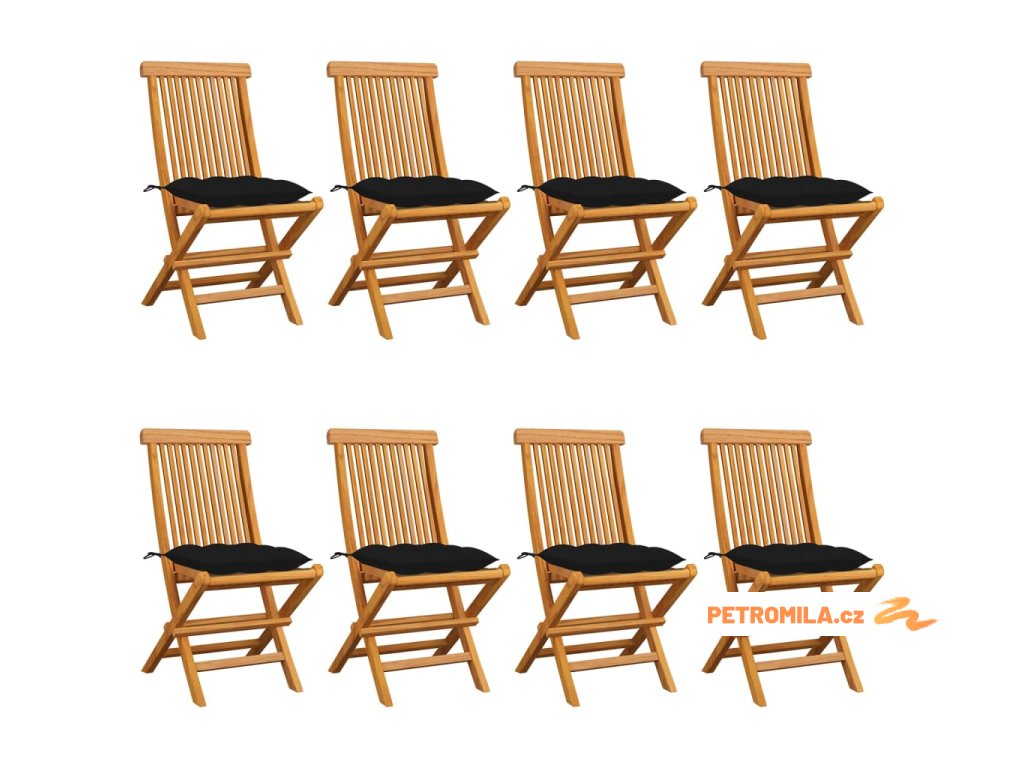 Zahradní židle s černými poduškami 8 ks masivní teak