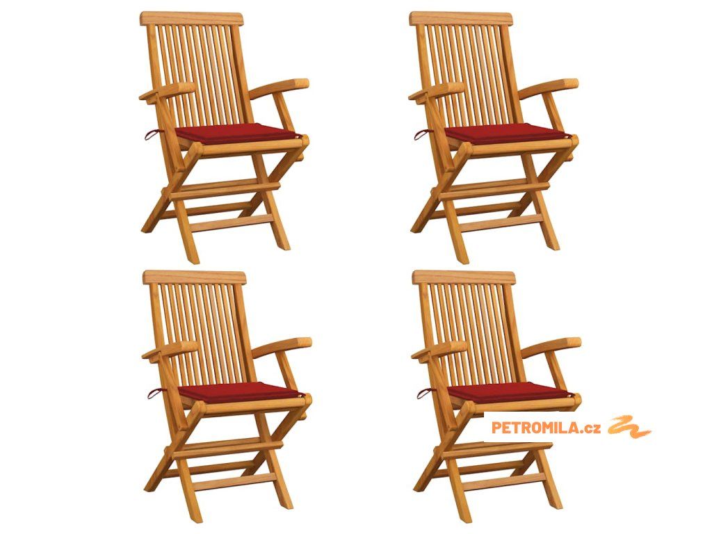 Zahradní židle s červenými poduškami 4 ks masivní teak