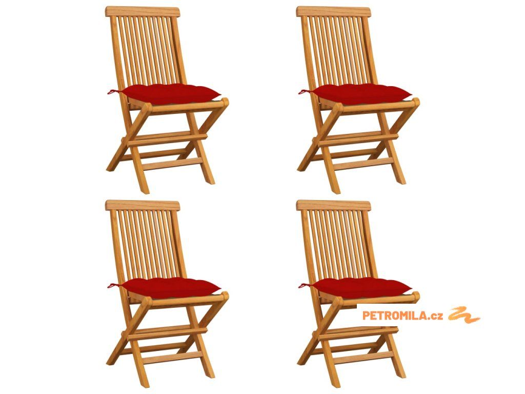 Zahradní židle s červenými poduškami 4 ks masivní teak