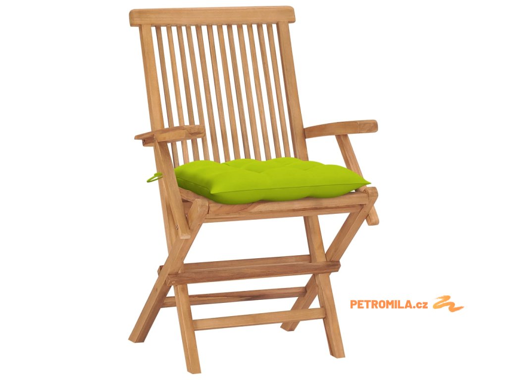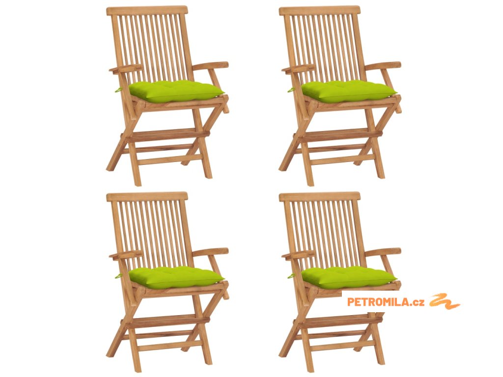 Zahradní židle s jasně zelenými poduškami 4 ks masivní teak