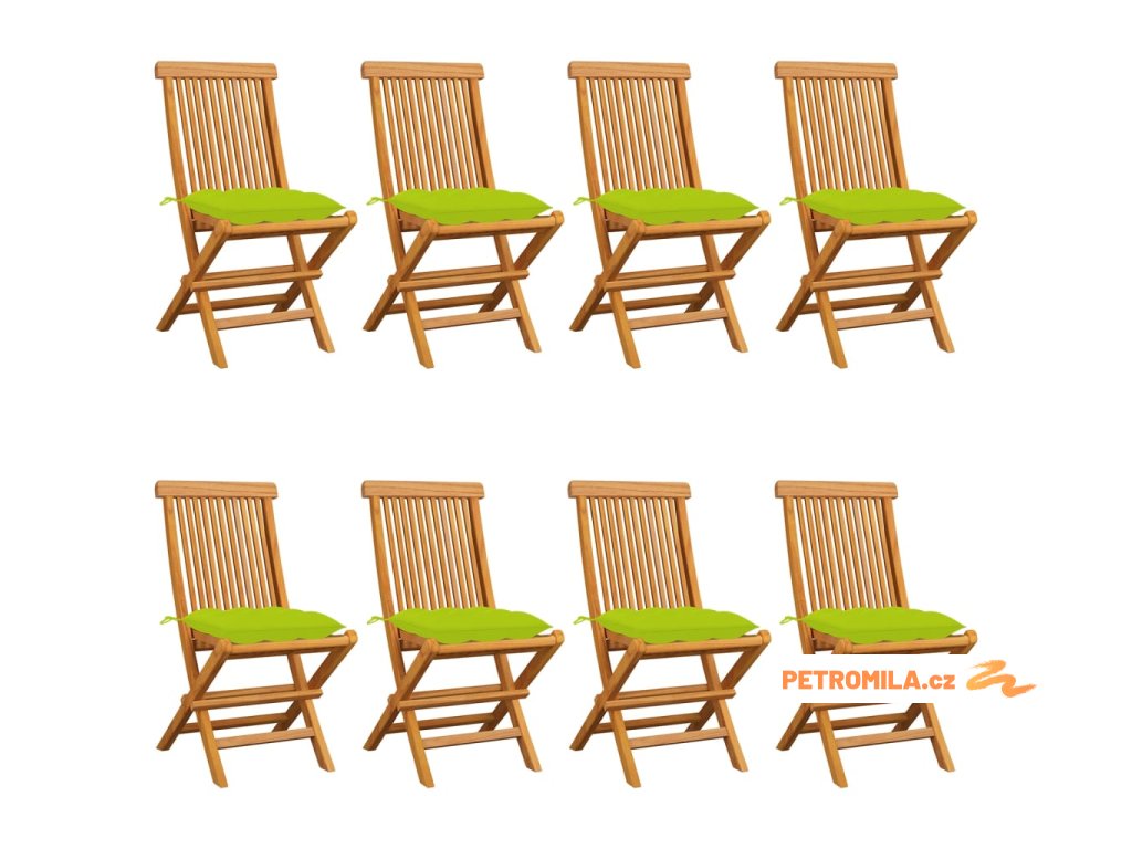 Zahradní židle s jasně zelenými poduškami 8 ks masivní teak