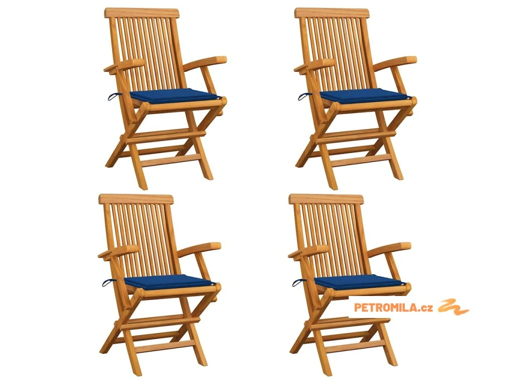 Zahradní židle s královsky modrými poduškami 4 ks masivní teak