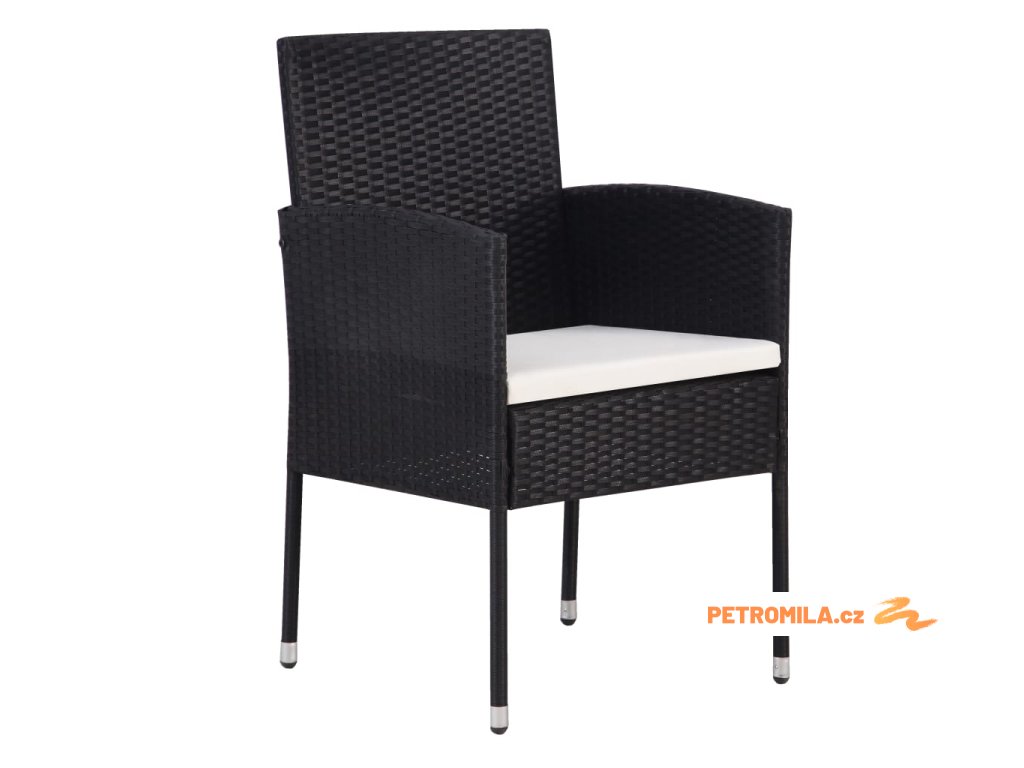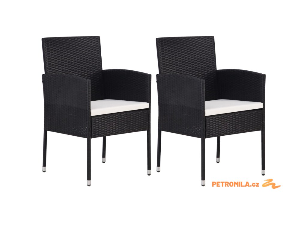 Zahradní židle s krémově bílými poduškami 2 ks černé polyratan