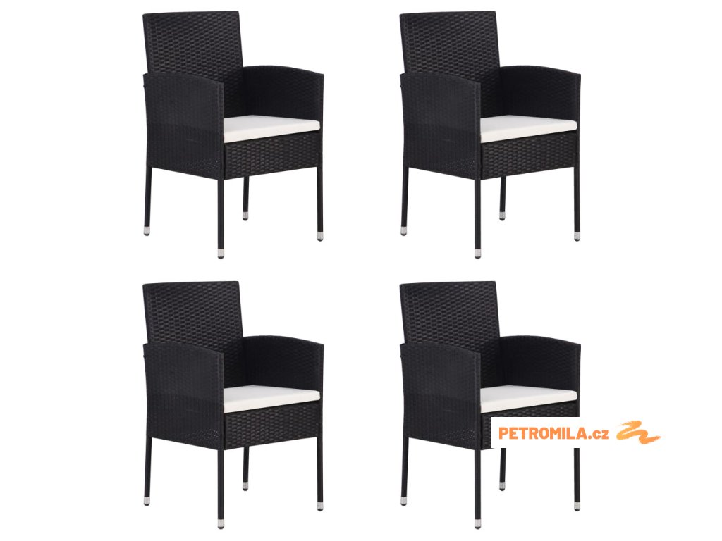 Zahradní židle s krémově bílými poduškami 4 ks černé polyratan